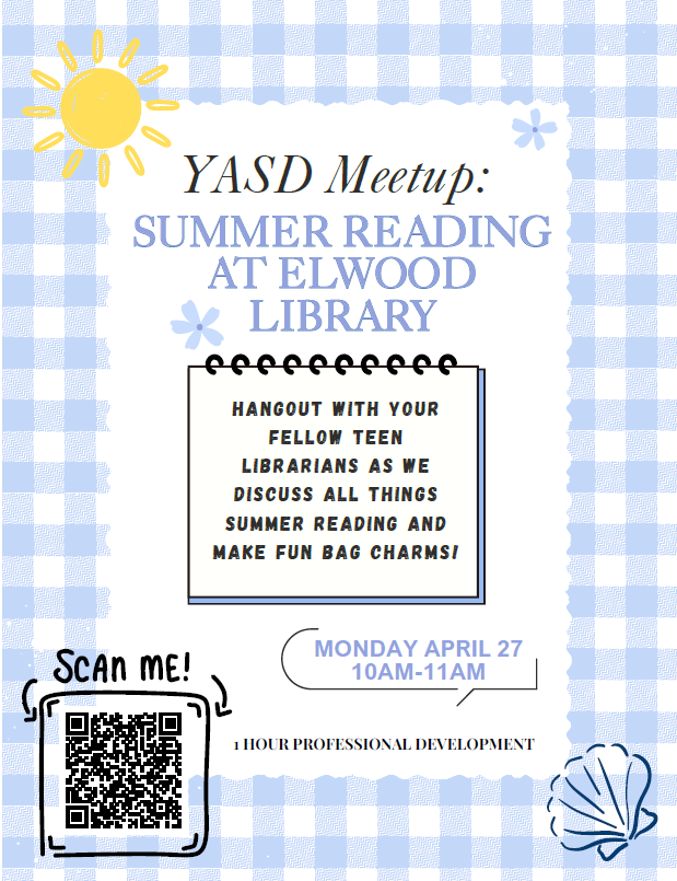 Get ready for summer reading with YASD! 🌞We will be having our next YASD Meetup: Summer Reading at the Elwood Public Library on Monday, April 27 at 10AM where we will discuss all things summer reading plus make some fun bag charms!